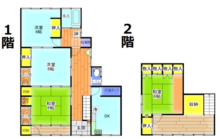 | 所在階/階数 | 1階、2階(1部)/2階建て |