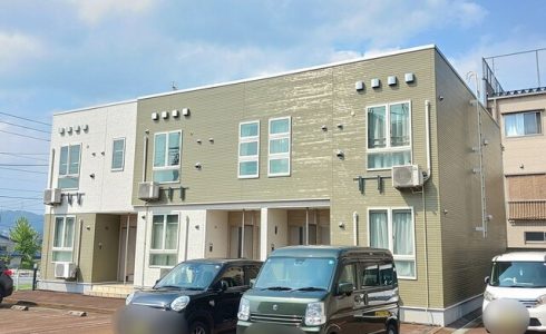 露天駐車場は消雪パイプあり!キナーレやスーパーまで車3分の便利な立地ですが、周辺は緑豊かで窓からは緑が見えます。