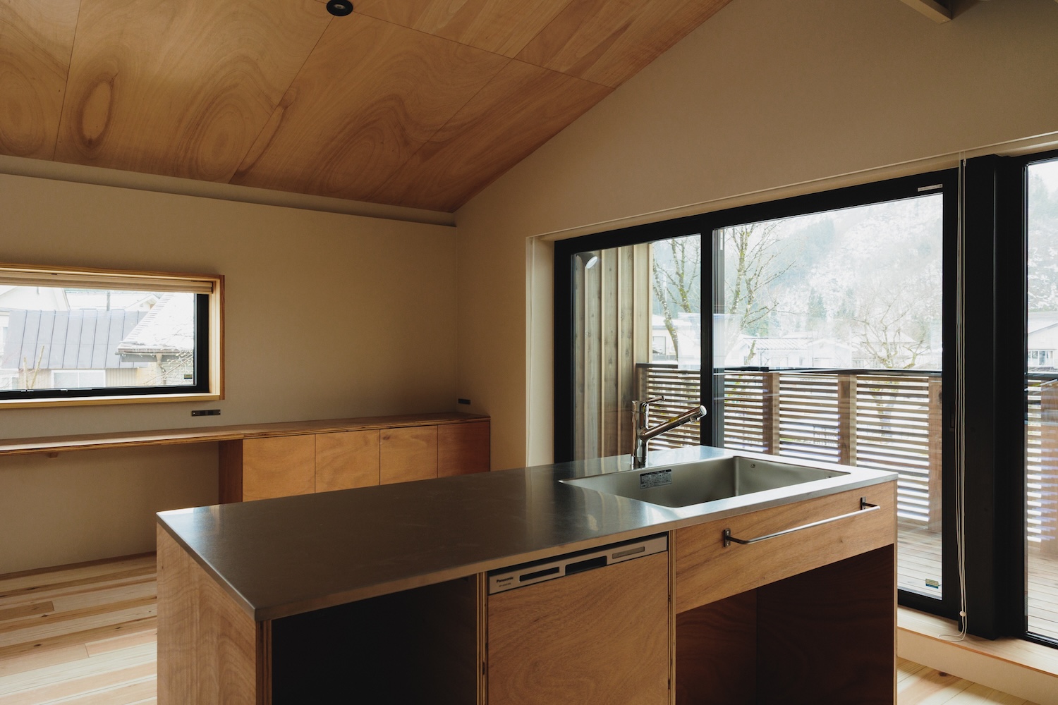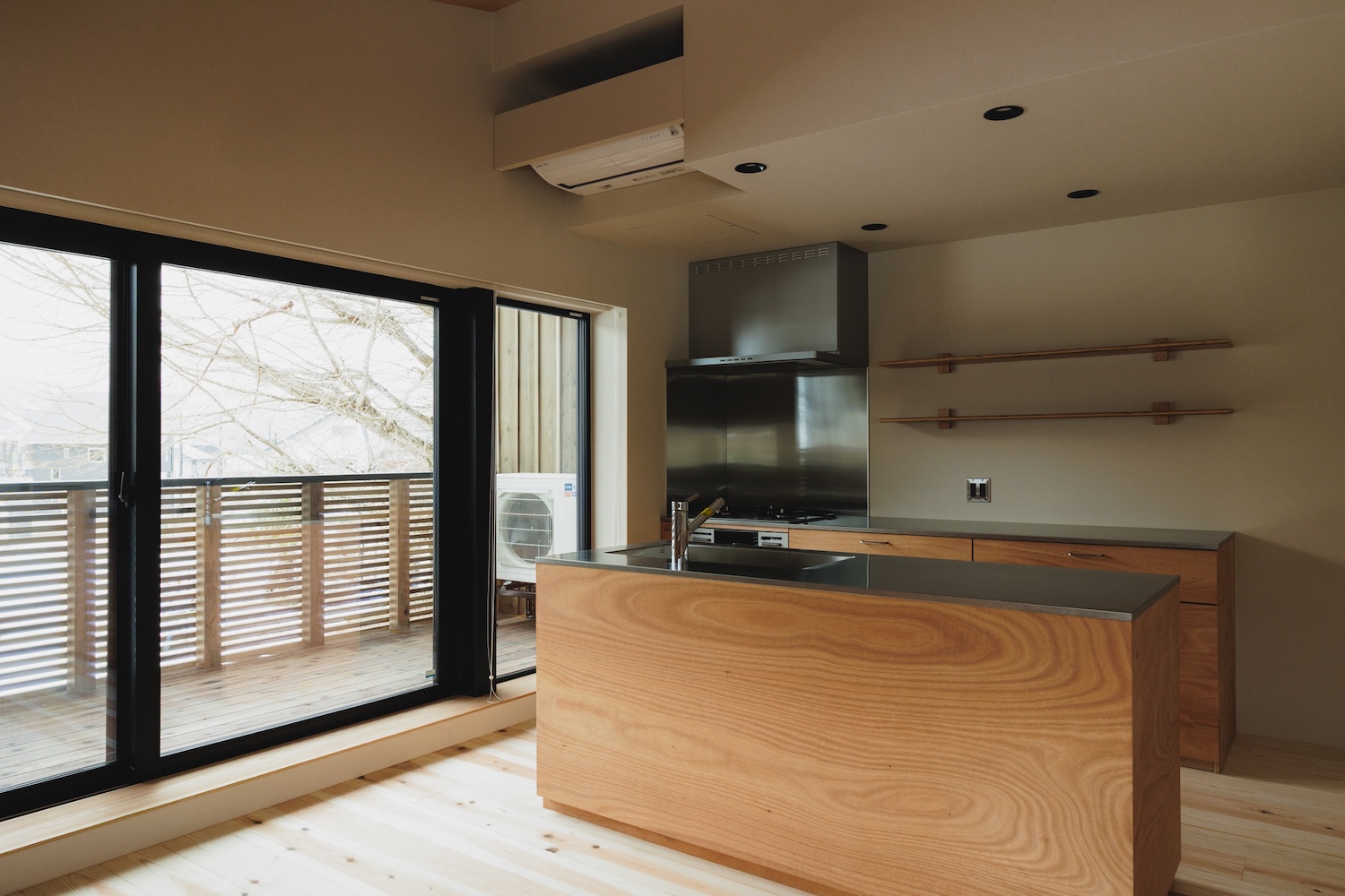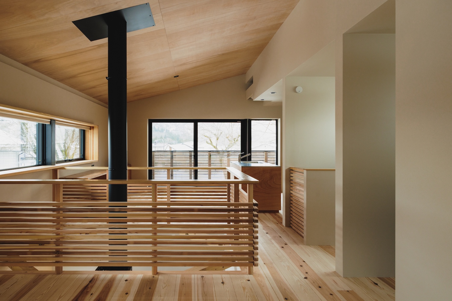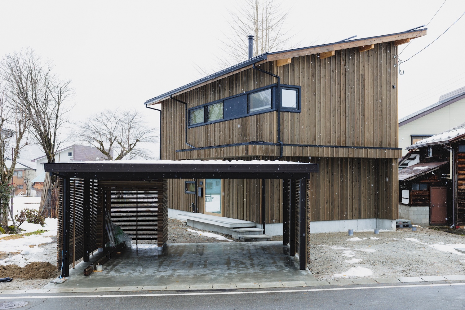 二階建て 新築 外部を取り入れる2階リビングの暮らし 風景を借りる贅沢 土地探しから始まった住まい。 湯沢町の中でも家々密集しているようなところですが 裏の借景や山々を取り込むという、こちらの敷地ならではの プランニング。 大きな玄関引き戸を開けると、薪ストーブと大きな吹き抜け。 玄関から心地よい空間を演出します。 メインの2階はリビング、キッチン、ダイニングの天井をつなげ一体空間に。 そして広いルーフバルコニーが内部と外部をほどよくつなげる役目に。 スペックはフラワーホーム基本の HEAT20 G2 気密性能 C値:0.16 雪処理はというと井戸水消雪で母屋と車庫を消雪。 外観はフラワーホームがお勧めする「魚沼杉」の縦張り。 地域にちゃんと馴染み、時代が過ぎてもステキな外観に。 心地よい家づくりのための、土地や物件もご提案させていただくことができます。 実際にその場所で、空気などを感じることからはじめませんか。 土地・中古住宅を探す 趣味と暮らすリノベの家